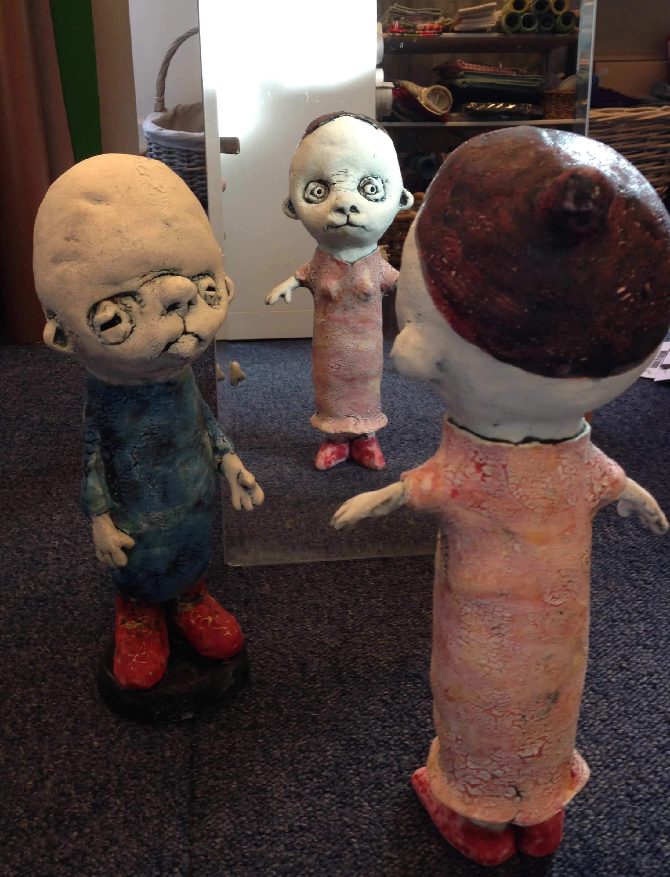 Ble ferdig med disse to i dag, pluss seks andre. Dvs. de må jo gjennom noen brenninger først, før de er klar for verden. Men jeg kan se hvem de er nå. Fra en sekk med leire har de vokst frem og fått liv. Men hvem er de egentlig?